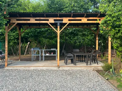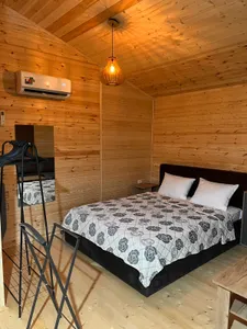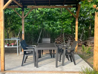 Отдыхали семьёй 4 человека с 3 по 8 августа 25 года. Всё понравилось. Территория не большая всего 4 домика чистая и ухоженная. На территории есть летняя кухня с необходимым инвентарем а также есть вся кухонная посуда и в домике из расчёта на 4 человека. На территории есть и летние гамаки стулья и столики для вечернего отдыха. в домики есть практически все для комфортного проживания. Нам очень понравилось. Рекомендую