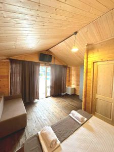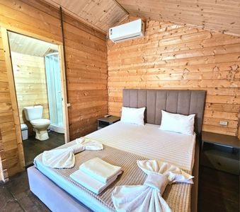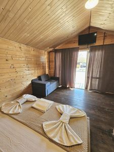 14 отдельно стоящих дома оборудованы и экипированы согласно стандартам отеля. Санузел с просторной душевой, текстильные принадлежности, кондиционер, фен, холодильник. Подогреваемый бассейн, лежаки, зонты. Мангальная зона, летняя кухня.