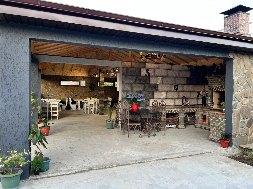 Летняя кухня со всей необходимой посудой для приготовления любимых блюд.