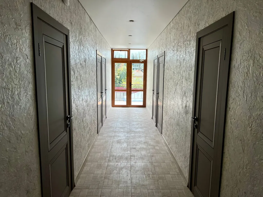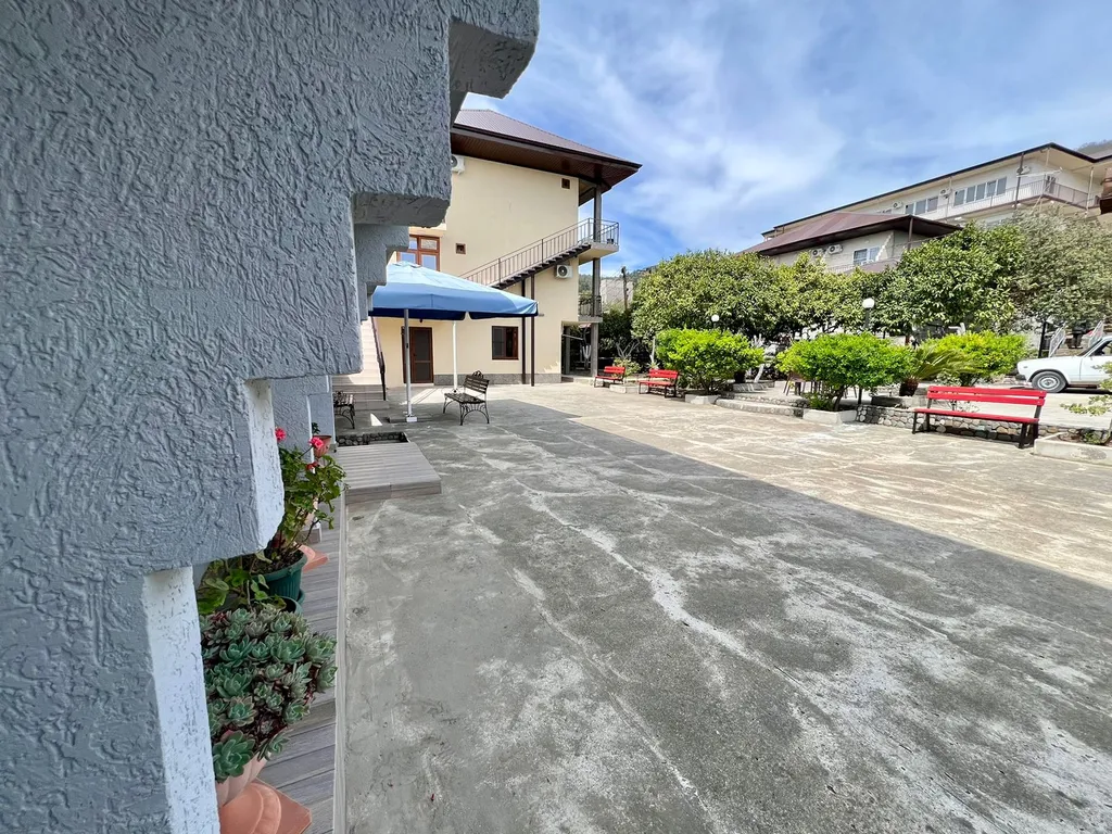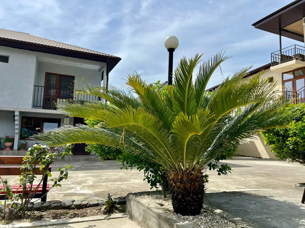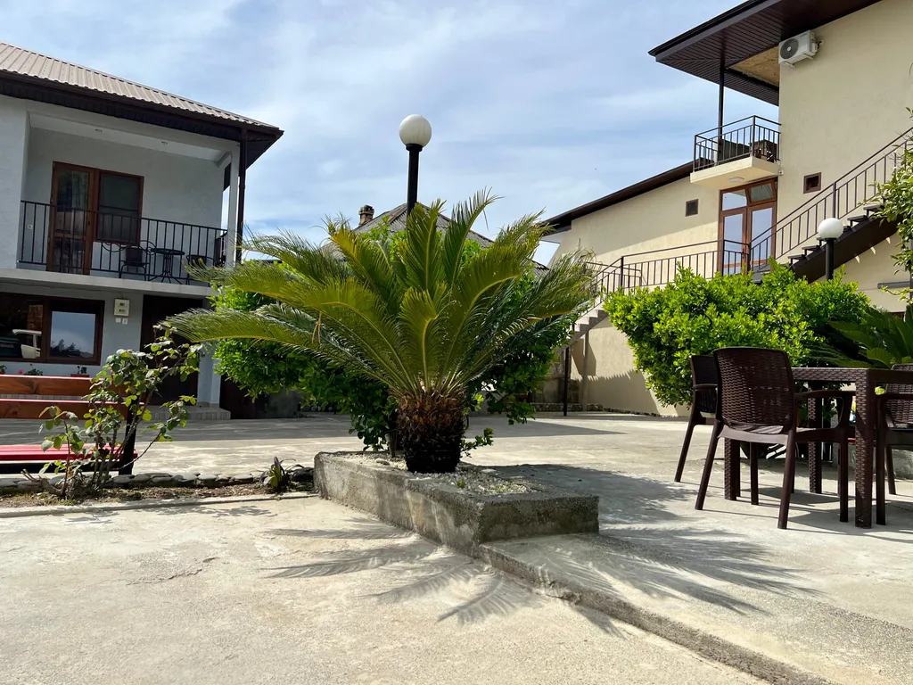 Мини отель расположен в курортном посёлке Цандрипш, недалеко от центра посёлка, а так же известной достопримечательности "Белые скалы" (1км). Расстояние до городского пляжа 300 метров. В пешей доступности находятся магазины, кафе и столовые, а так же магазин беспошлинной торговли Дьюти Фри (Duty Free). На территории мини-отеля есть небольшая столовая, бассейн, зона для загара с шезлонгами, парковка, на всей территории работает Wi-Fi.
