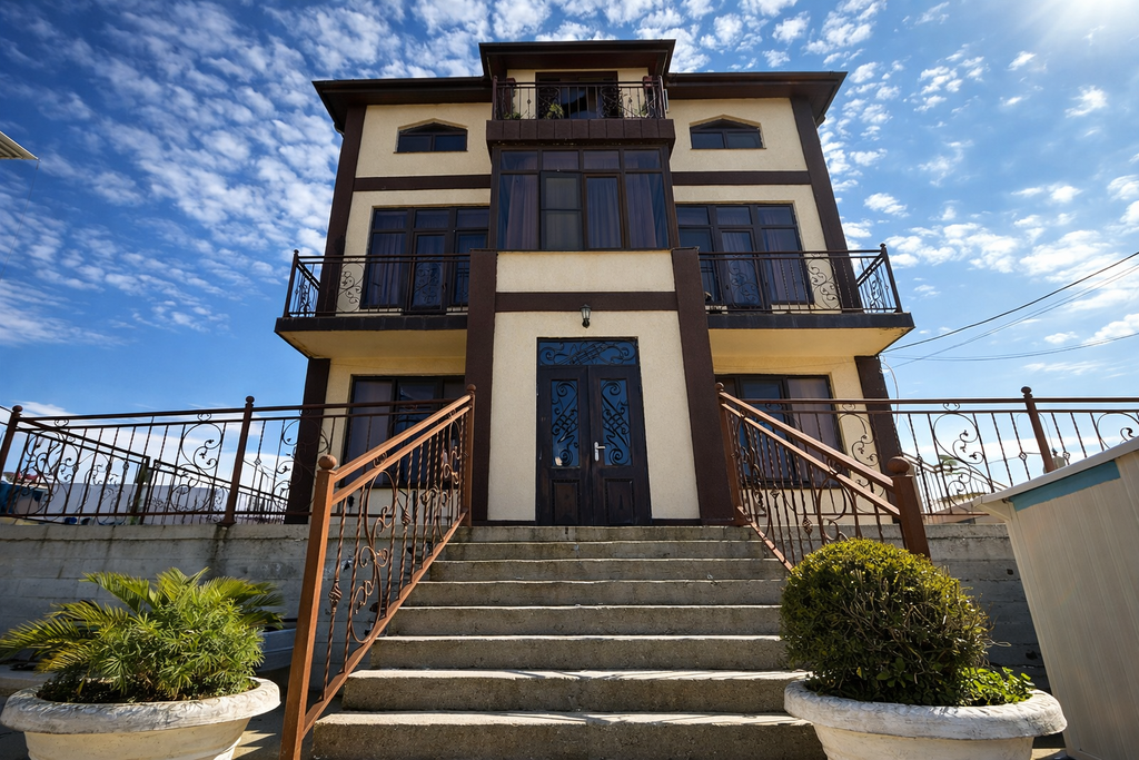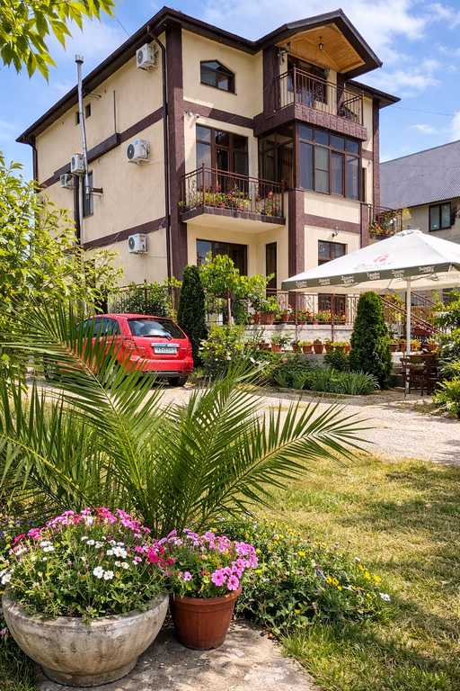 Это трёхэтажный дом с атмосферой настоящего южного гостеприимства. Здесь нет лишней суеты, всё просто, тепло и по-домашнему. В доме 13 номеров: 9 двухместных с удобствами и 4 трёхместных номера с общими удобствами. Чисто, аккуратно и с тем самым ощущением, когда тебя принимают не как туриста, а как… гостя.