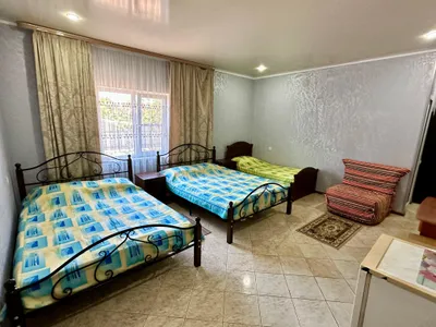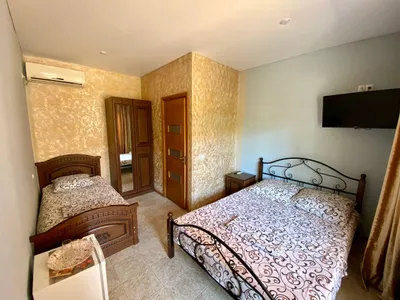 Всё понравилось. Территория очень красивая, есть уютные беседки, мангал, лежаки, качели, детская площадка, шикарный бассейн с подсветкой и теплой чистой водой, кухня для гостей со всем необходимым, гостевая зона с столиками, телевизором, и хорошим интернетом. Номер чистый, удобный, всё есть - туалет, душ, даже фен, всегда горячая вода, кондиционер, холодильник, телевизор с основными каналами, всё работает. Рядом с номером свой столик, стульчики для отдыха на улице, сушилка для белья, гладильная доска. Бассейн шикарный, просто восторг. До магазинов, вкусной столовой, моря близко. Есть возможность купить все необходимое (коралки, футболки, шорты, купальники, круги, сувениры, местные деликатесы) в пешей доступности, не надо ехать в центр или в Гагру. До границы 15 минут гуляя. Мы приехали на 9 дней, а потом продлили ещё на 6 дней проживание. Очень уютный отель, прямо чувствуется абхазское гостеприимство, всё сделано для гостей и с душой. Спасибо за замечательный отдых и отличное настроение!