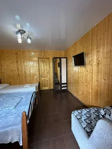 Выбрали этот гостевой дом из за близости к границе. Пешком (800 метров) выходили в Сочи, гуляли до позднего вечера и возвращались, так как граница работает круглосуточно. При заселении и при выезде хозяин довез с вещами без платно (звонили заранее). Заселили нас в комнату побольше размером (была свободна), в комнате есть телевизор, кондиционер, туалет с душем. Большущая летняя кухня (мы готовили сами, покупали продукты в Магните на границе). Но рядом на каждом шагу столовые, магазины, минирынок. До моря нужно идти минут 7-10. На другом конце села расположена достопримечательность «Белые скалы» ездили на такси.