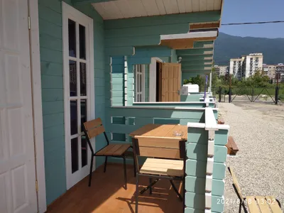 Отдельные номера в деревянных домиках на два номера каждый. В номере 2-х спальная кровать комод тумбочки, санузел с душевой кабиной и водонагреватель 80л, мини-холодильник, кондиционер (сплит система тепло-холод), в семейных номерах дополнительно мини-диван с трансформацией в полноценное спальное место. У каждого номера своя терраса с комплектом мебели стол+4 стула. Фен по запросу.