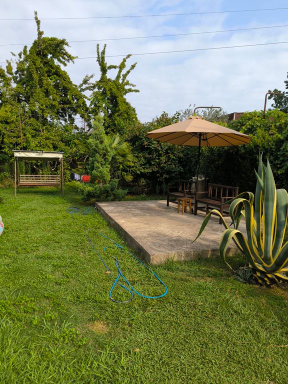 Во дворе есть мангал и место для отдыха, где можно приятно провести время в кругу семьи или дружной компанией.